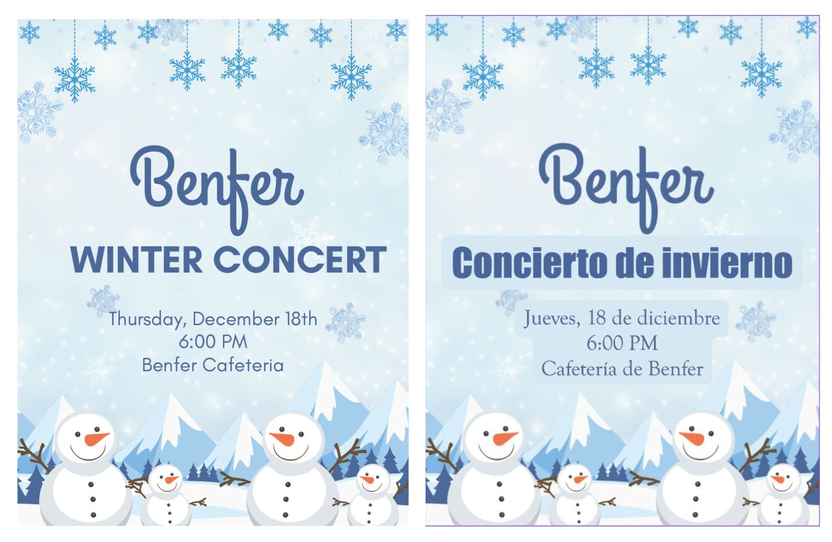 | Thursday, December 18th at 6:00 PM: Winter Concert for Benfer Beats and Choir
