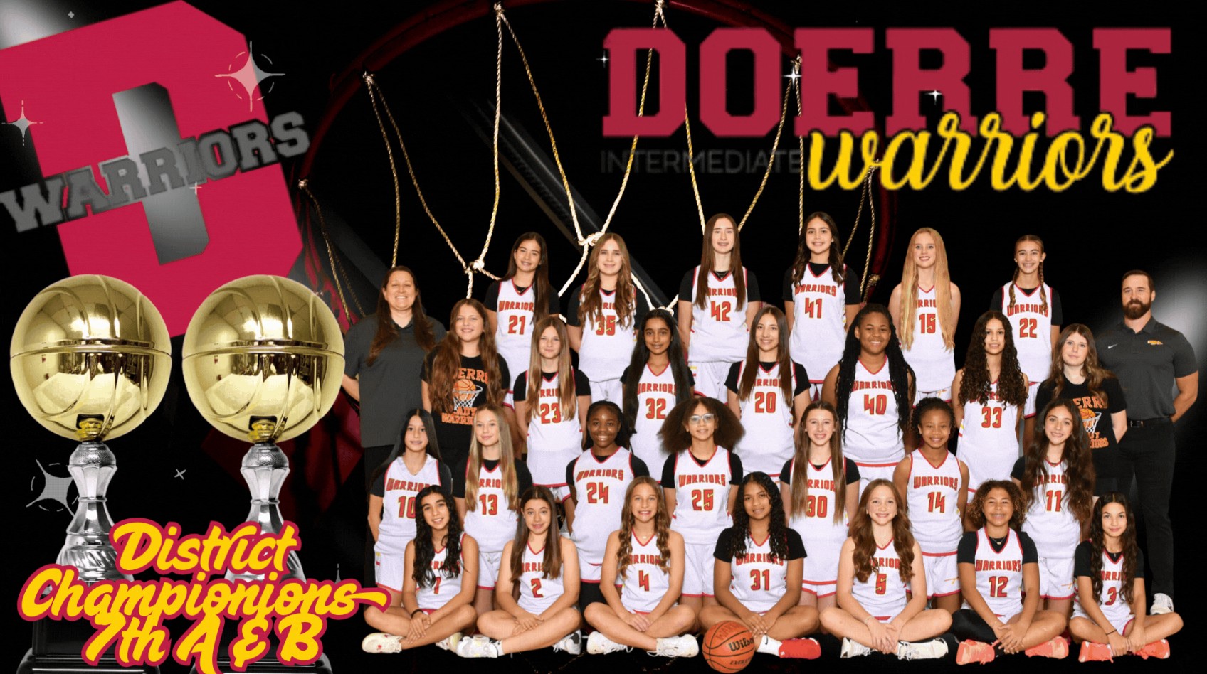 Our Doerre Warriors basketball program had a banner season, with several teams winning district titles! Please join us in congratulating these outstanding athletes! District Champions: 7th grade girls A team 7th grade girls B team 8th grade girls B team 8th grade boys B team 2nd place 8th grade girls A team - 2nd place, district 3rd-4th place 7th grade boys A team - 3rd 7th grade boys B team - 3rd/4th *playoff game canceled due to weather 8th grade A team - 4th |