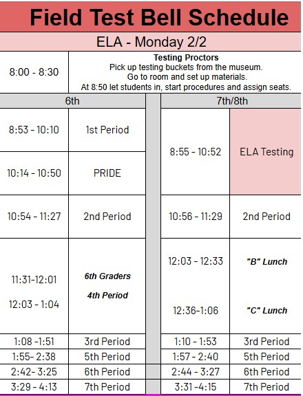 On Monday, February 2, our 7th and 8th grade students will participate in the TEA STAAR RLA Field Test. This is a short trial version of the STAAR test, and each year TEA selects campuses across the state to take part. This field test is not for a grade and will not impact students’ 2025–2026 STAAR scores in any way.