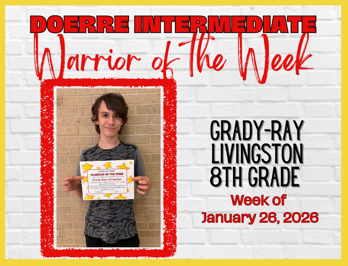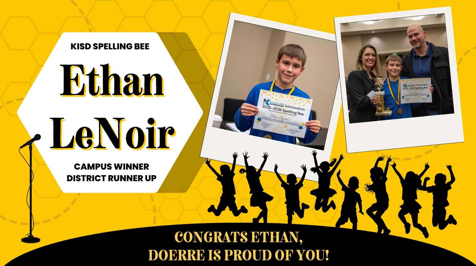 We hope everyone has a wonderful weekend and is staying warm! ❄️ Last week was a busy one—and one full of celebrations! From bringing home district championships in basketball, to placing 2nd in the Klein ISD Spelling Bee, to hosting a successful Spring Open House and welcoming our future students during 5th grade visits—whew, what a week! Be sure to check out the photos below for some great highlights. This week, we’ll be administering the STAAR ELA Field Test (required by TEA) on Monday, the 8th grade Panoramic photo on Thursday, and we’re looking forward to wrapping up the week with our Q3 PRIDE Games on Friday. As a reminder, next week is already mid-winter break for students. Let’s make it an amazing week! Annie Welday-Zimney Principal, Doerre Intermediate