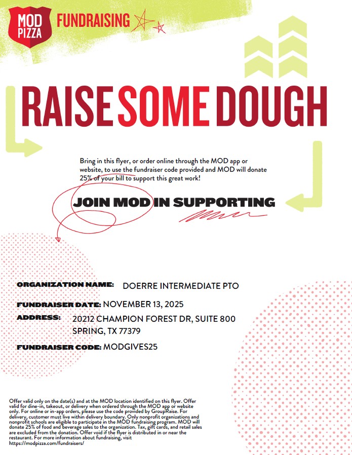 Supporting the Doerre PTO is one of the best ways to make a direct impact on our teachers and students! By joining, you help provide valuable resources, fund exciting events, and create opportunities that enrich the learning experience for all Warriors. Your membership helps ensure our teachers feel supported, our students are celebrated, and our campus community continues to thrive. Together, we can make a difference—join the Doerre PTO today! Join here: Doerre Intermediate School PTO - Klein ISD, TX - Membership |