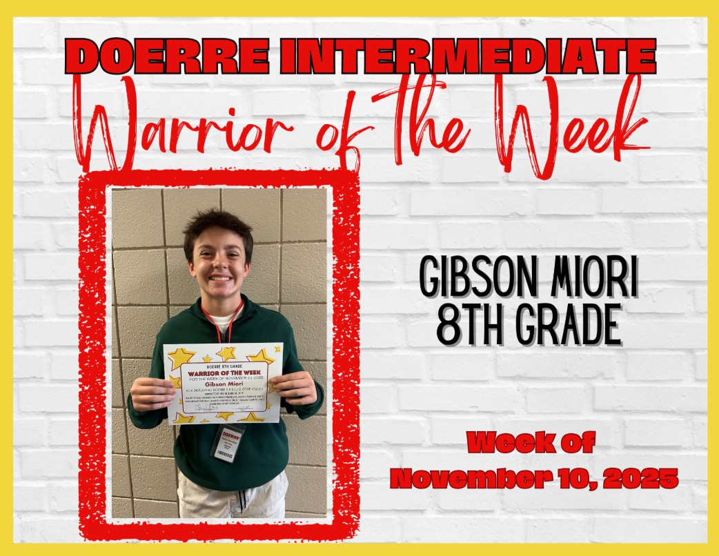 Wishing you and your family a great week leading into the holiday! Let’s make it another great week at Doerre! With appreciation, With gratitude, Annie Welday-Zimney Principal, Doerre Intermediate |