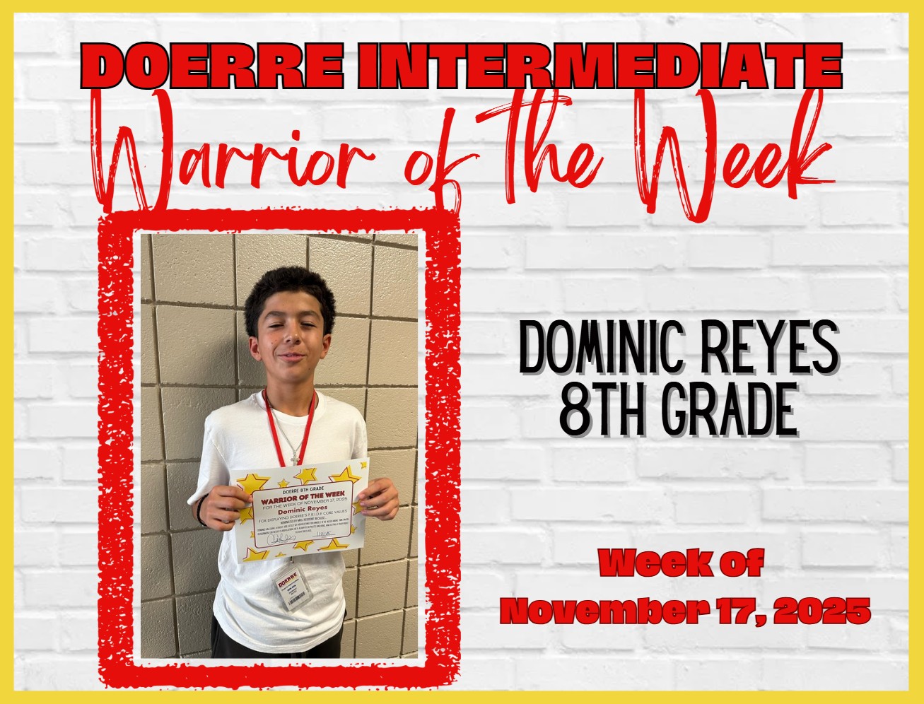 As we head into the next three weeks, things will move quickly as we prepare to wrap up the semester and look forward to Winter Break. If your child needs anything as we get back into the swing of things, please don’t hesitate to reach out—we’re here to support them. We also encourage families to stay connected with teachers about grades, missing work, or any support your student may need to finish the semester strong. Let’s make it a great week at Doerre! With appreciation, With gratitude, Annie Welday-Zimney Principal, Doerre Intermediate |