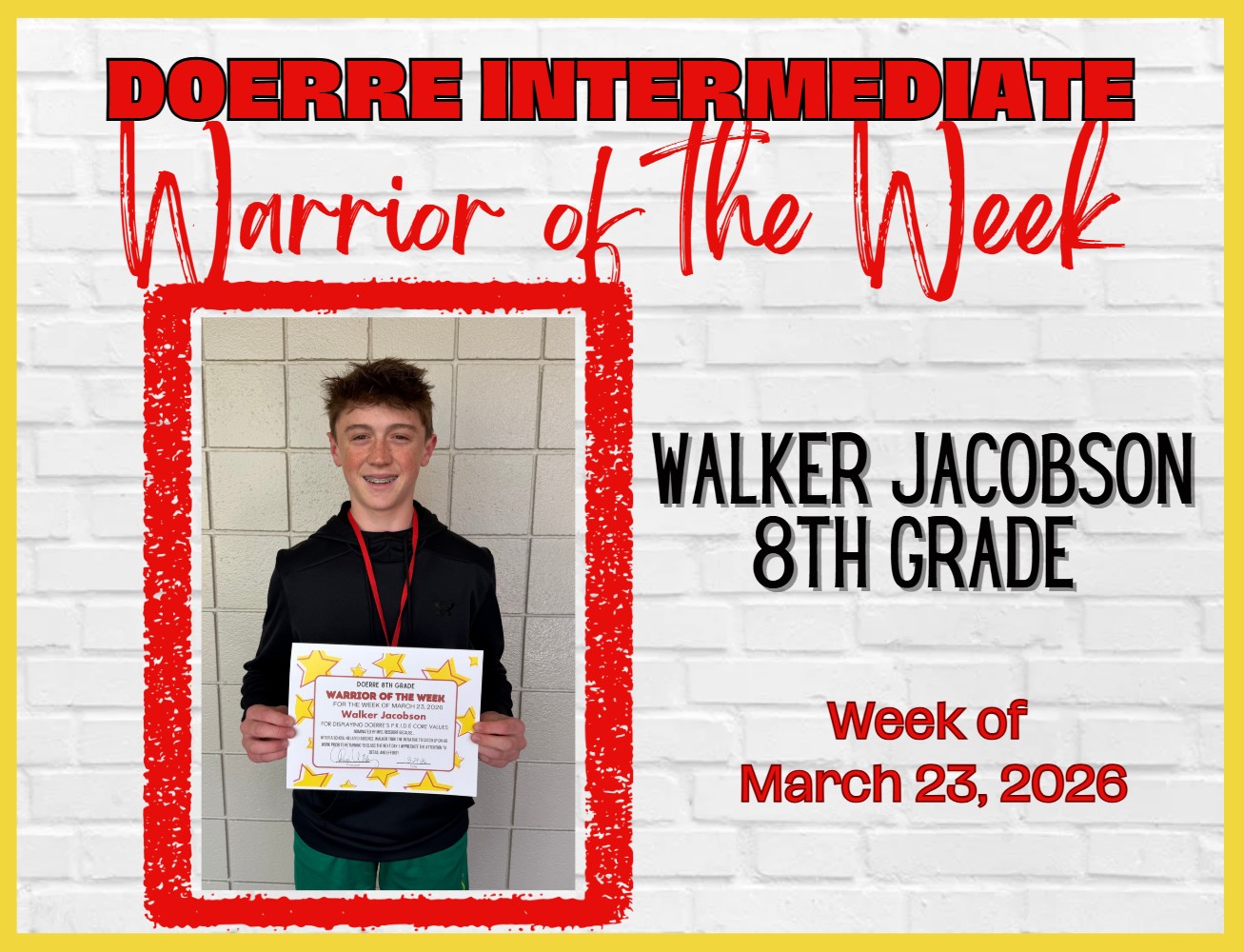 Additionally, we will be revisiting important safety procedures with students this week, including ID expectations, safety drills, exterior door protocols, wanding procedures, etc. We appreciate your continued support and partnership as we work to ensure a safe environment for all students at Doerre.