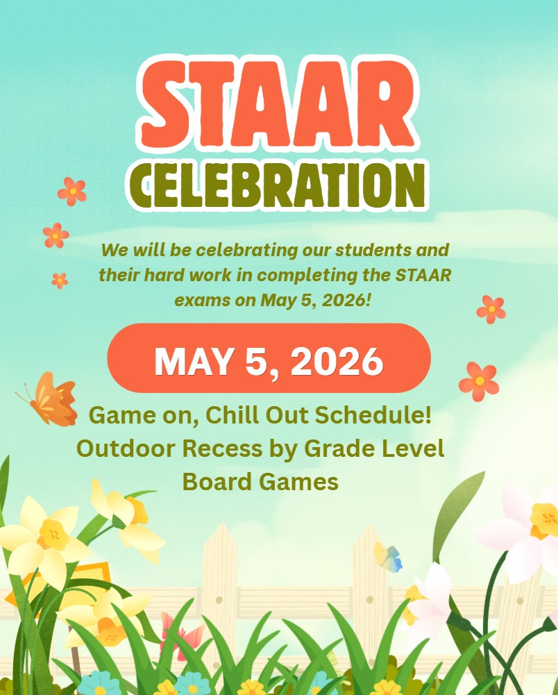 We are so proud of our students and staff for their hard work these past weeks on STAAR! This week, STAAR testing will conclude with our Algebra I students taking their test on Tuesday, April 28. Huge shout out to Ms. Mullins and Ms. Solomon who have done an incredible job organizing our many testing days this school year.