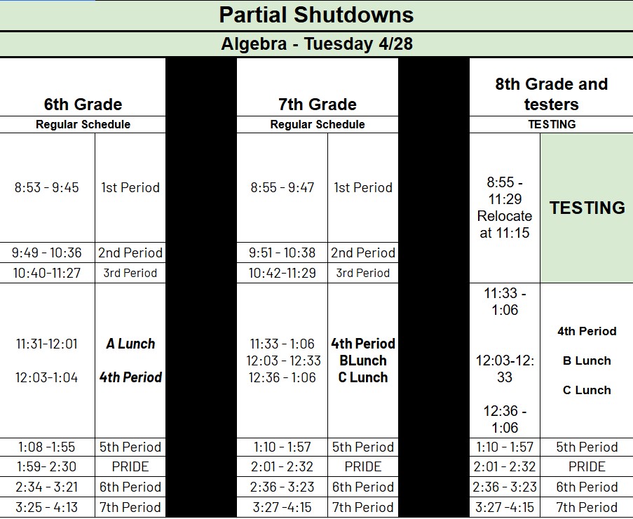 This week, students and staff will return to our regular PRIDE schedule. We are thankful for the opportunity these past weeks to allow teachers to see their own students and offer extra help/tutoring in preparation for STAAR. See the schedule below for more details.