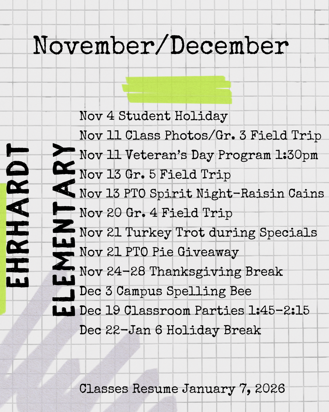Student safety is a top priority at Ehrhardt and during arrival and dismissal times, it becomes very important that everyone follow procedures to make sure students arrive and exit safely, quickly and appropriately. Please support our campus staff by adhering to the arrival and dismissal procedures. No matter what, we require that all family members remain in their vehicles during arrival and dismissal times. We also require that all Ehrhardt families are good community members and follow posted and known traffic laws and regulations. This includes parking in appropriate areas and being mindful of private property around the school property. While we know car rider lines can be long, they are truly the quickest and safest way to drop off and pick up from school.