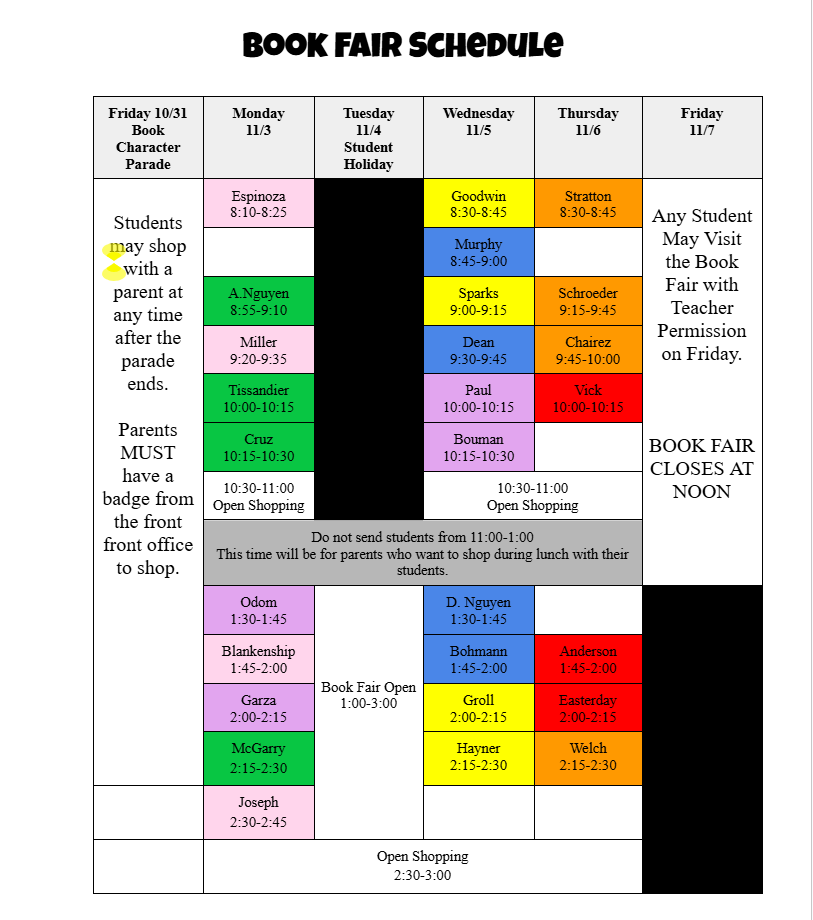 Book Fair Dates: Oct. 31st-Nov. 7th