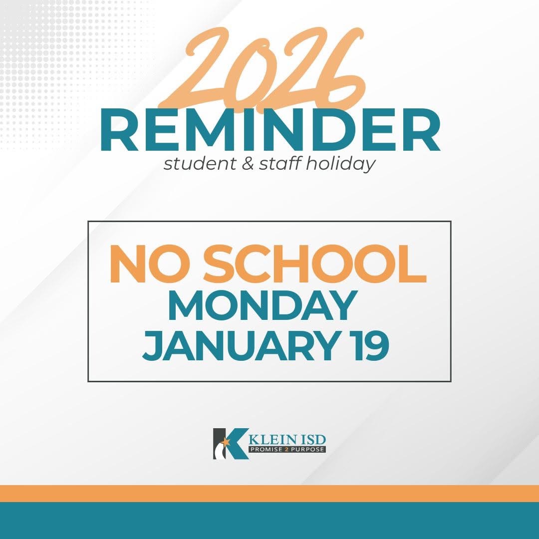 Families of 8th graders—join us for High School Course Selection Night to learn about four-year plans, graduation requirements, and next steps for incoming freshmen. Get informed, ask questions, and help your student make strong choices for high school. Klein High School: Thursday, January 22 from 5:30-7:00 PM