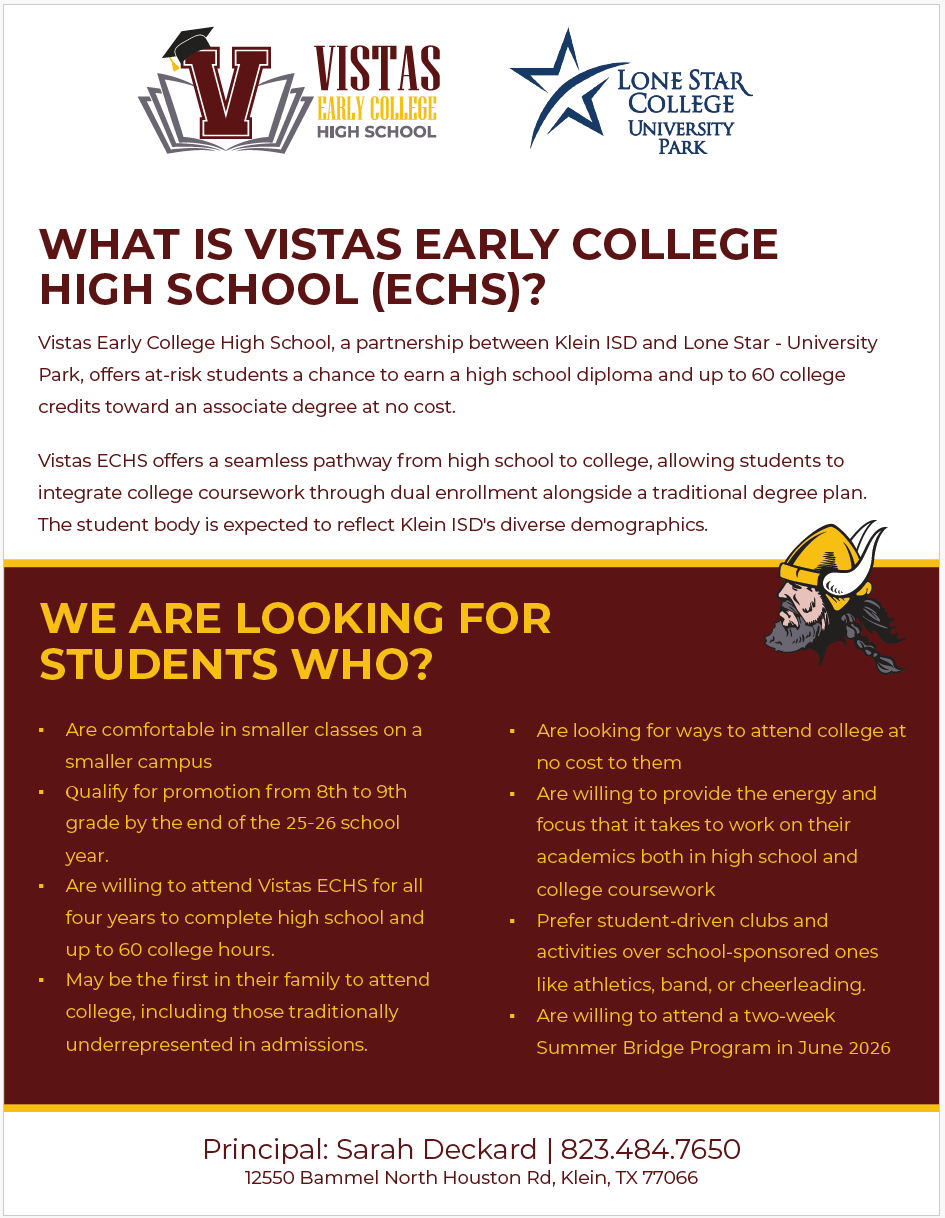 Do you have an 8th graders who is curious, motivated, and ready to take on new academic challenges? VISTAS is looking for students who are independent learners, collaborate well, show strong problemโsolving skills, and are excited to explore advanced coursework and enrichment opportunities.