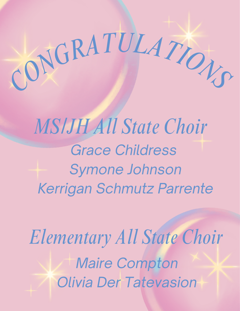 I also would like to congratulate our students who have earned the distinction of All State Choir! We are so very blessed to have such talented students and teachers like Mrs. McDonald and Mrs. Chrest, who are committed to excellence every day. Our Kleb Choir is second to none! |