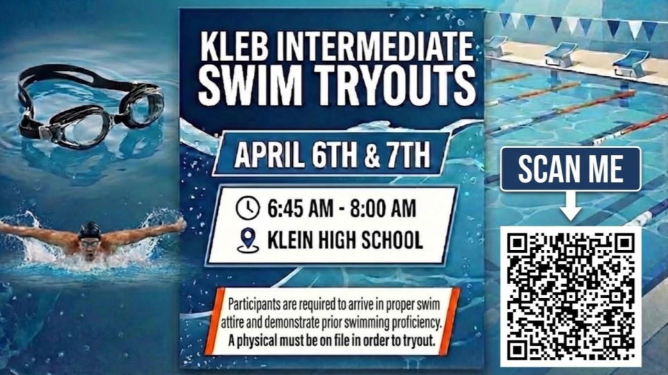 Make a splash and join the Kleb Intermediate swim team! Tryouts are happening soon at Klein High School. π