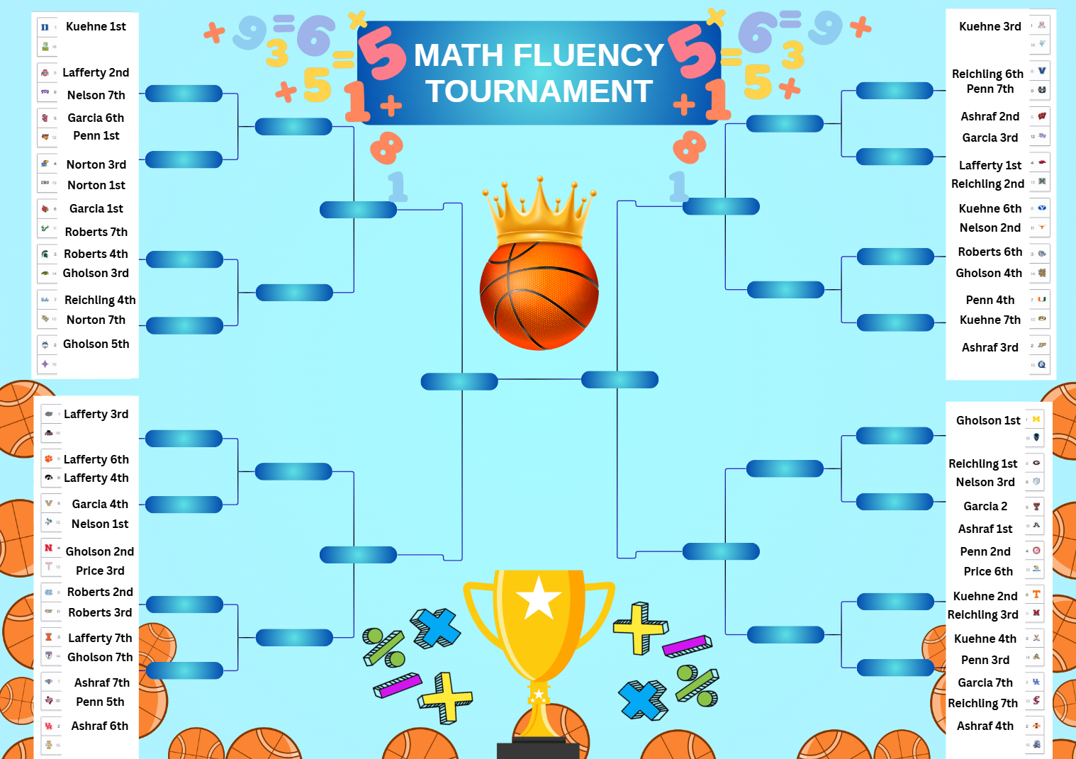 Our Math Department is excited to announce the initial standings for our Fact Fluency March Madness Bracket! This exciting competition is designed to help students build confidence and master their multiplication facts while having fun with friendly classroom competitions.