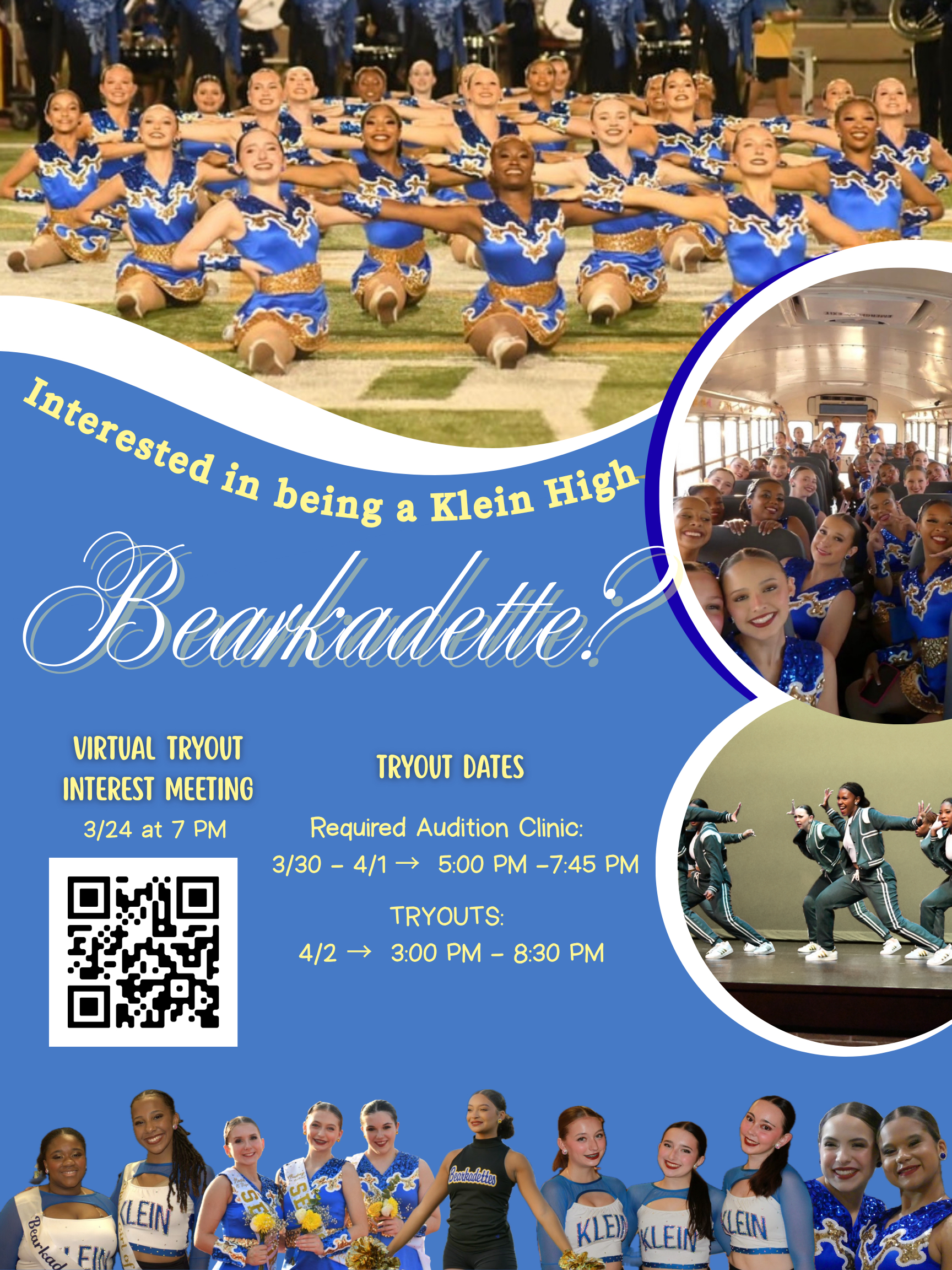 This is an incredible opportunity to join the prestigious Klein High Bearkadettes dance team! Start preparing now and don't miss any of the required dates. Your high school dance career could begin here!