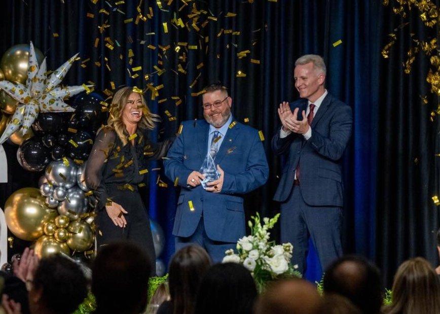 The Klein Multipurpose Center ballroom erupted into applause as Klein Collins High School Art teacher Chad Hardin was named the 2026 Klein ISD District Secondary Teacher of the Year.