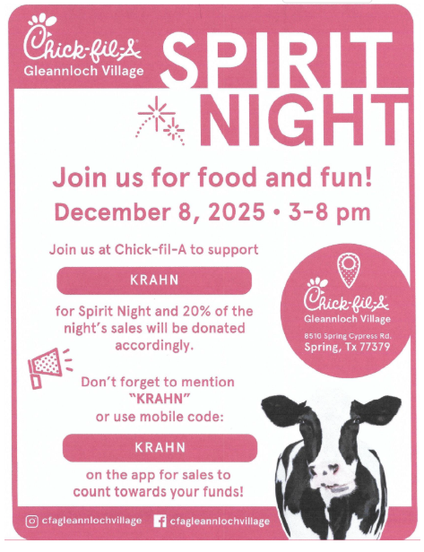 December - Chick Fil A – December 8th (3:00-8:00)