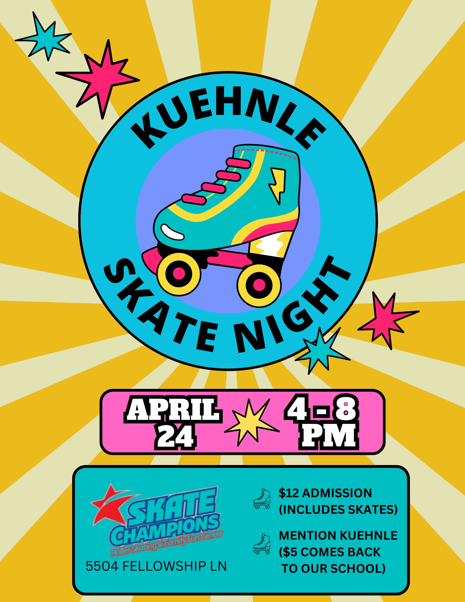 April 24- Volunteer Appreciation Breakfast (for volunteers only) and Skate Champions PTO Spirit Night 4-8pm