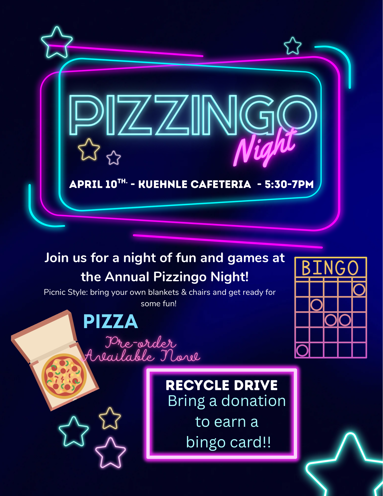April 10 - PTO Pizzingo Event 5:30-7pm