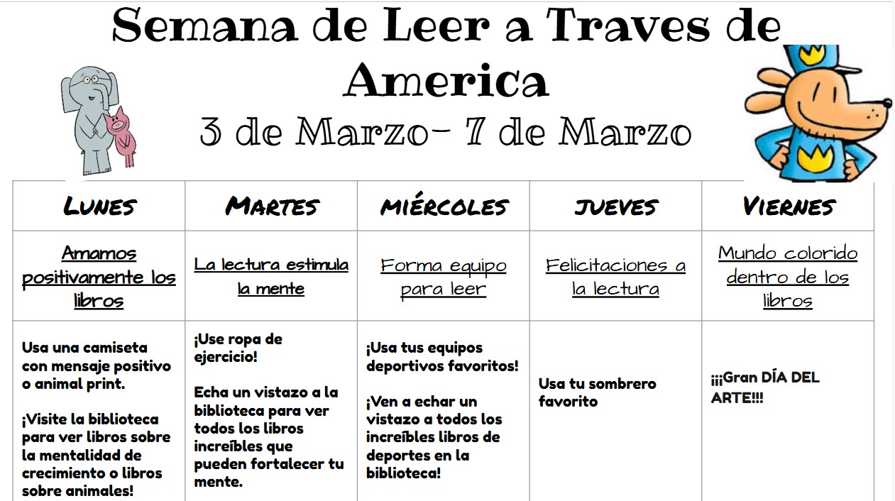 Wednesday: Kindergarten & 4th grade Thursday: 1st Grade & 5th Grade Friday: Special Request** ACCESS follow grade level schedule