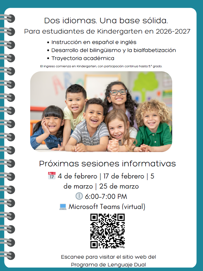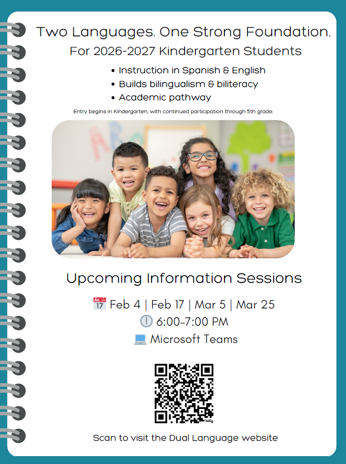 Two Languages. One Strong Foundation. — Klein ISD’s Dual Language program for 2026–2027 gives students instruction in both Spanish and English, builds bilingualism and biliteracy, and creates a clear academic pathway from Kindergarten through 5th grade. Entry begins in Kindergarten, and families are invited to learn more at upcoming Microsoft Teams information sessions on Feb 4, Feb 17, Mar 5, and Mar 25 from 6:00–7:00 PM. Scan the QR code on the flyer or visit the Dual Language website to get details and join a session — a wonderful opportunity to set your child up for language success and academic confidence!