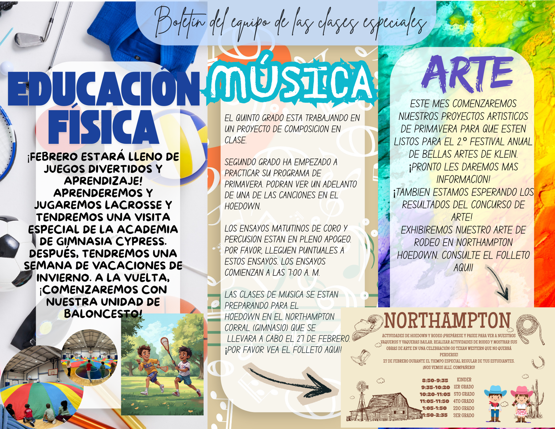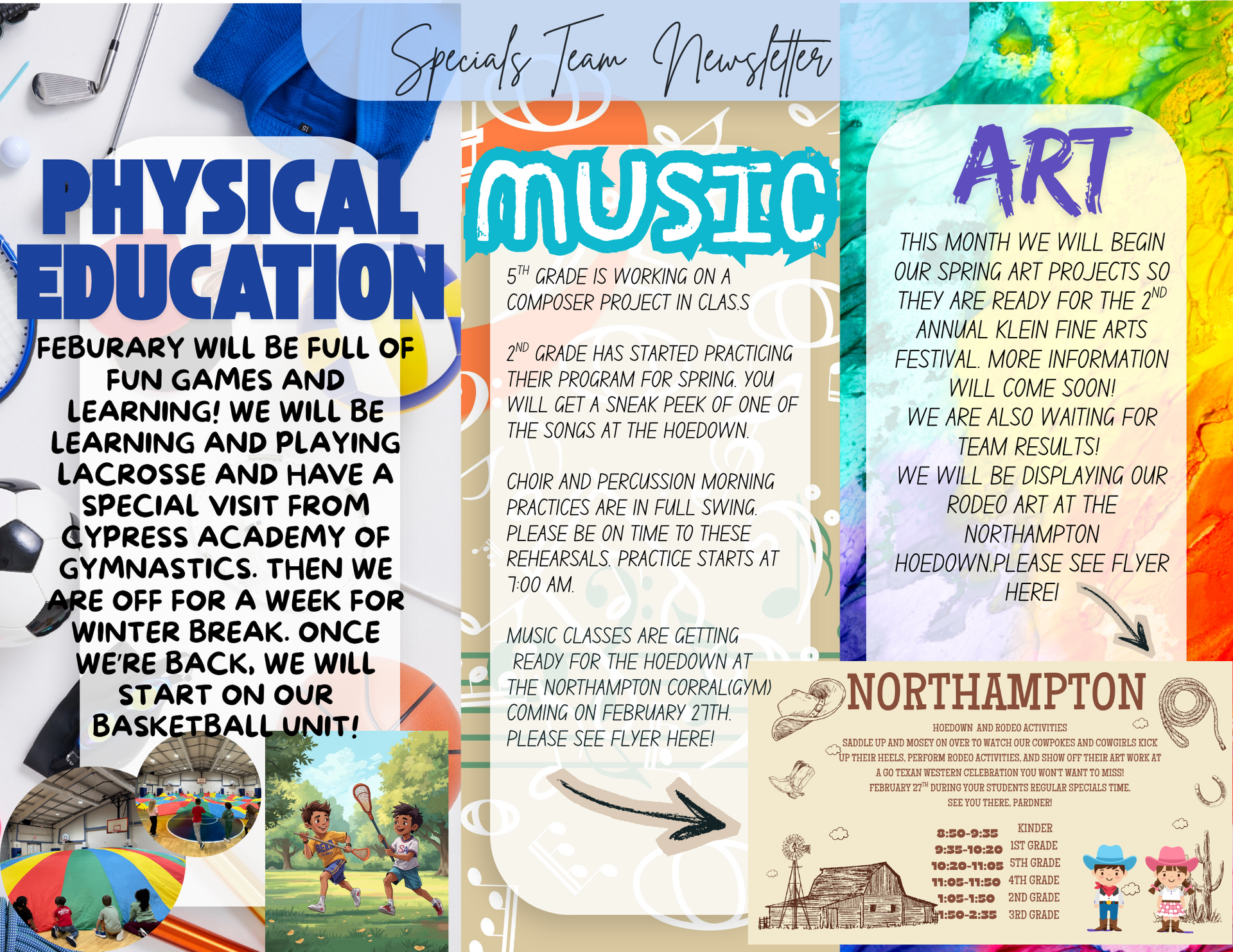 Saddle up for our lively Hoedown and Rodeo Activities on February 27 — a Go Texan western celebration your whole family will love. Watch our cowpokes and cowgirls kick up their heels with rodeo-style activities, cheer as they perform, and admire their proudly displayed artwork throughout the day. Come during your student’s regular specials time so you don’t miss a moment — the schedule is: Kindergarten 8:50–9:35