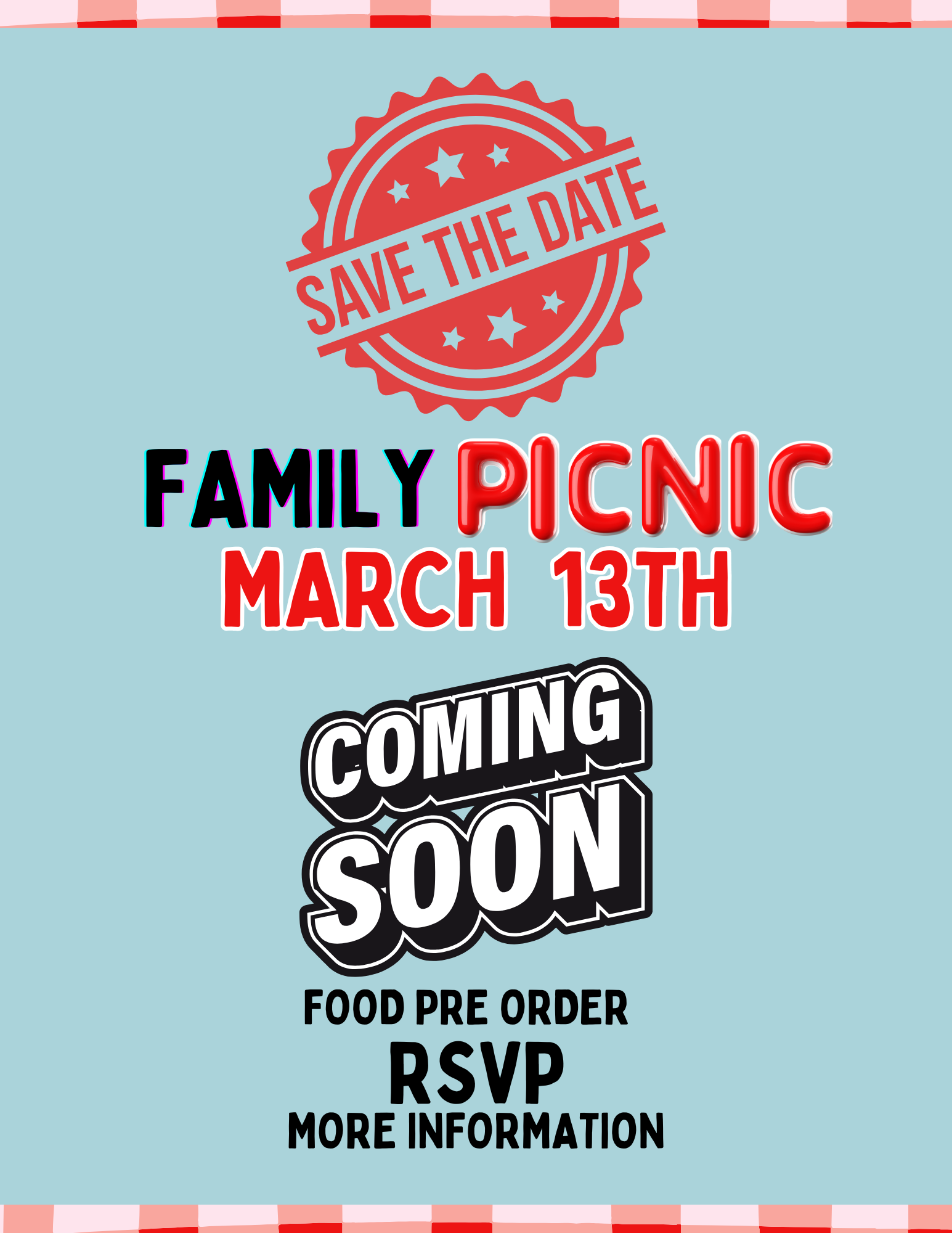 | | Family Picnic — March 13