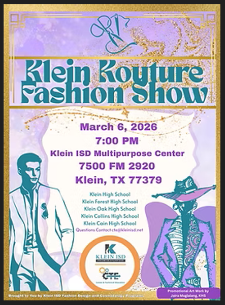 Get excited—Klein Kouture Fashion Show on March 6 at the Klein ISD Multipurpose Center is a stylish celebration of creativity, design, and technical skill. Brought to you by Klein ISD’s Fashion Design and Cosmetology programs, this event showcases student talent from across the district and highlights how art, engineering, technology, and craftsmanship come together in STEAM. Why it’s so cool for our students: