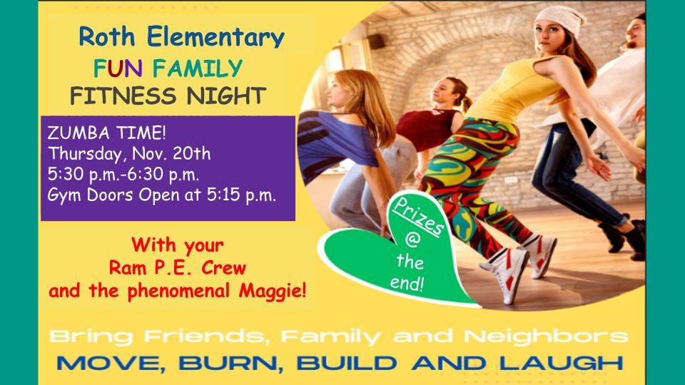 - Nov 20th PE hosts Family Zumba Night 5:30-6:30