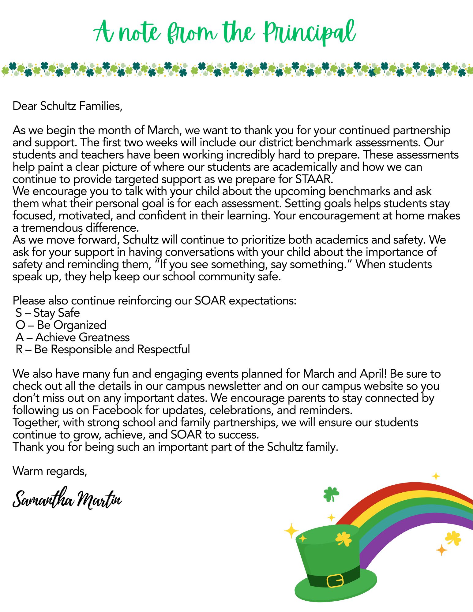 Follow us on Facebook: @SchultzElementarySchool & @SchultzElementaryPTO