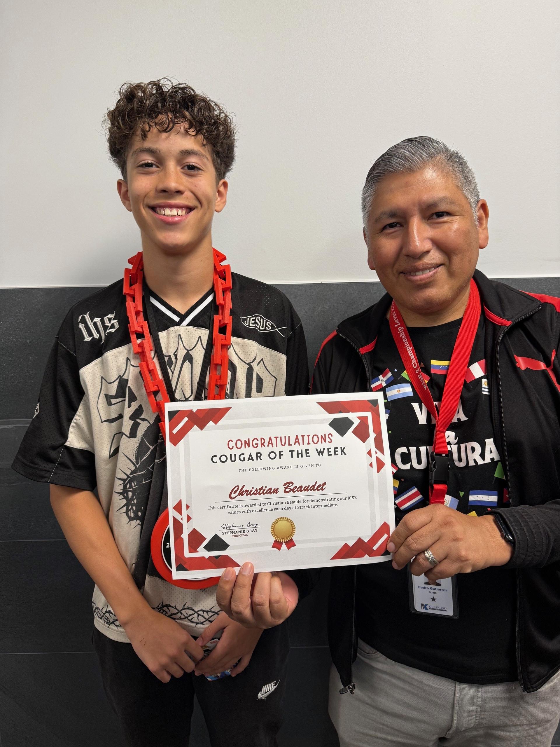 We’re proud to honor Cougars each week who lead with heart and show our RISE values in action. These students embody what it means to be a Strack Cougar—showing Resilience, Integrity, Self-Discipline, and Empathy. Way to go, Cougs! |