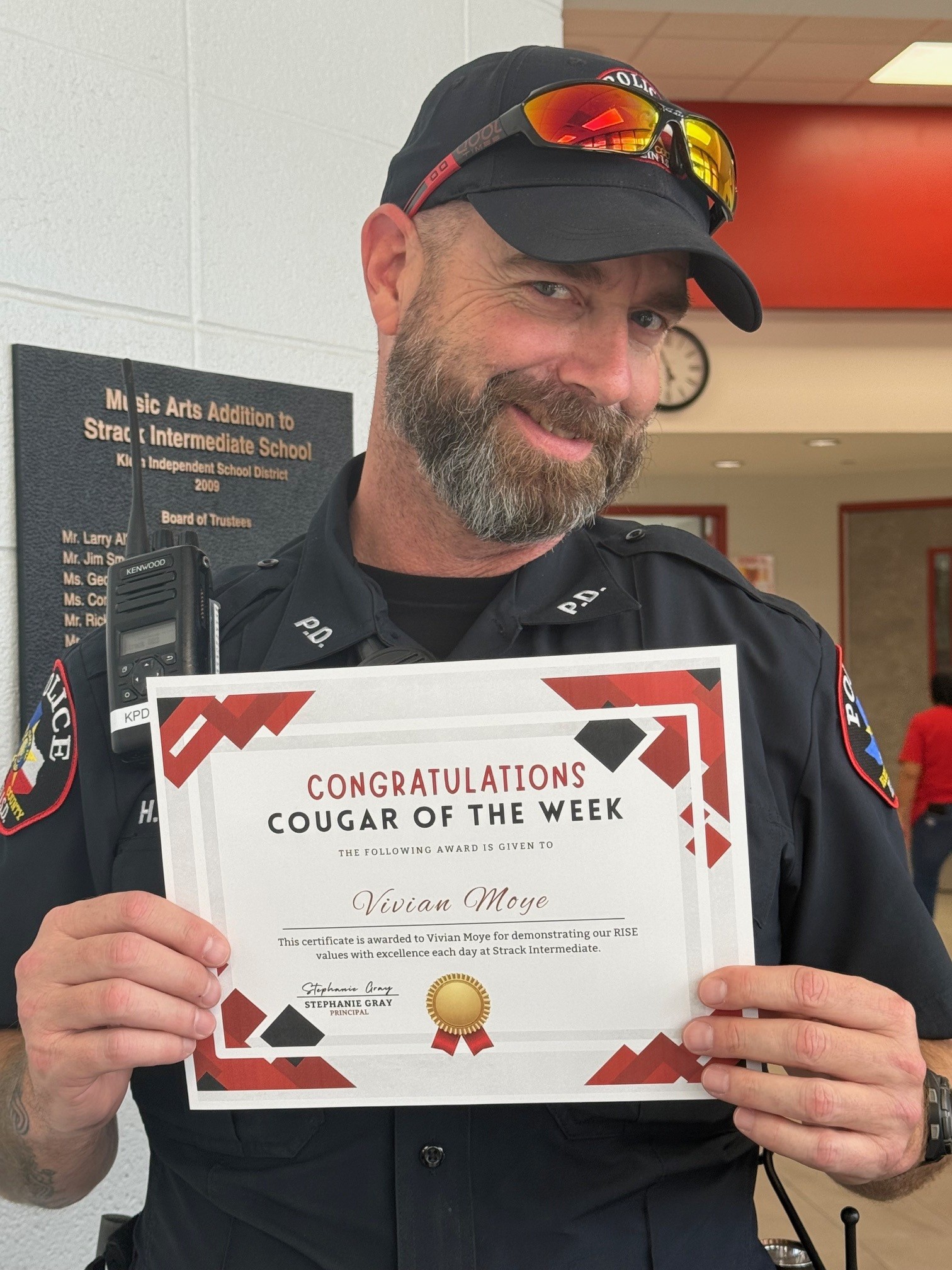 Last Friday we said farewell to our beloved Strack officer, Officer Kalbow, who has accepted a new role as a detective. We are grateful for the relationships he built with our students and staff and wish him the very best in his new adventure. At the same time, we are excited to welcome our new campus officer, Officer Wilkinson, to the Strack family. Officer Wilkinson is new to Klein ISD Police Department, but has over 25 years of law enforcement experience. Please be sure to give him a warm Cougar welcome when you see him on campus! 🐾