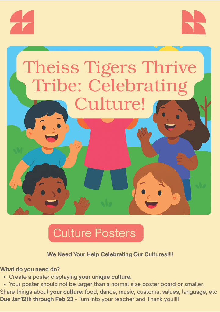 Welcome back and Happy New Year! We are excited to begin the Spring semester and welcome our students and families back to Theiss Elementary. If you are new to Theiss, welcome! This newsletter will have links at the bottom to access prior newsletters, and we keep many of our procedures included in each newsletter as a resource for all. We hope your Winter Break was filled with rest, joy, and meaningful time with loved ones. As we return to campus, our staff is energized and ready to support our students as they continue to learn, grow, and thrive.